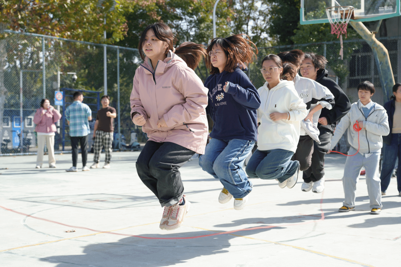 学工组老师们也加入跳绳赛场,为这场青春赛事添上别样温暖。