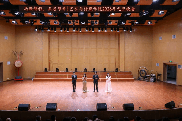 “马跃新程 共贺华章”2026年元旦晚会在北区音乐厅举行。学院领导班子成员、专业教师、学工组专兼职辅导员与同学们齐聚一堂,共迎元旦,活动现场洋溢着浓浓的节日气氛。