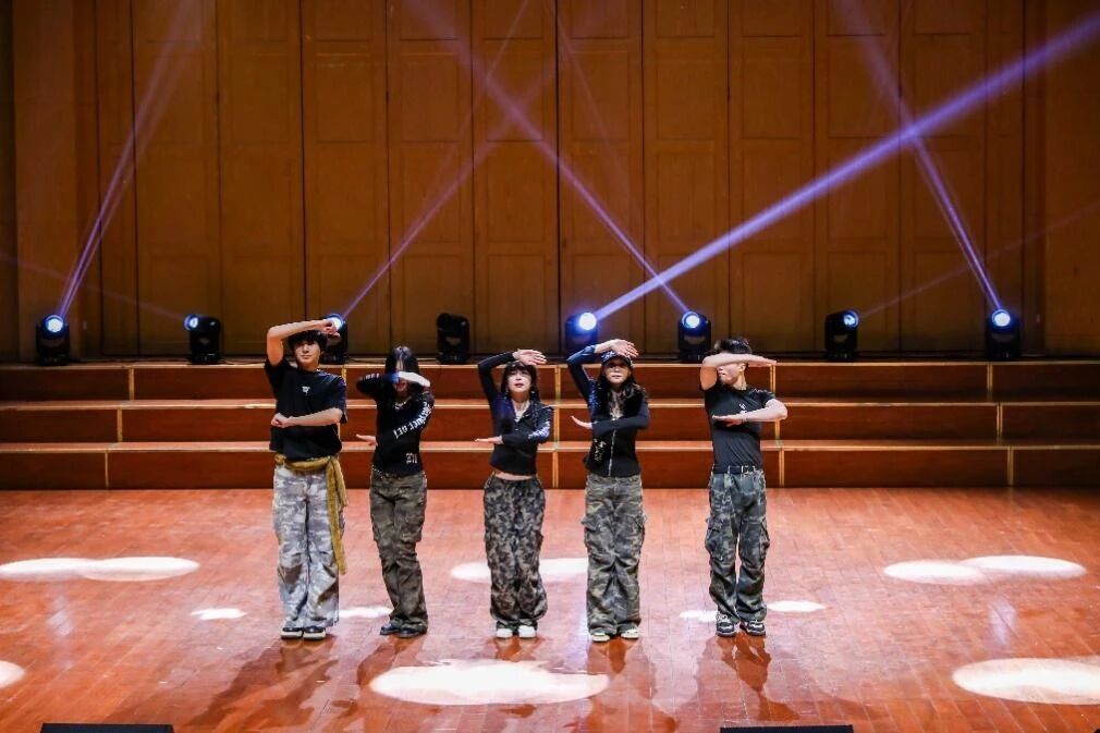活力四射的开场舞《Do the Dance》瞬间点燃全场,程天、刘语晗、罗心悦、袁悠然、张诗晗五位同学用充满张力的舞姿拉开了晚会的序幕。随后的歌曲对唱《可能否+游移的月亮》则像一阵温柔的风,孙浩天与程翰林的歌声交织,诉说着青春里的细腻心事。古韵悠悠的《壁上观》在孙沛儿的歌声与秦伊贝的钢琴伴奏中缓缓流淌,让人仿佛置身月色如水的静谧夜晚。