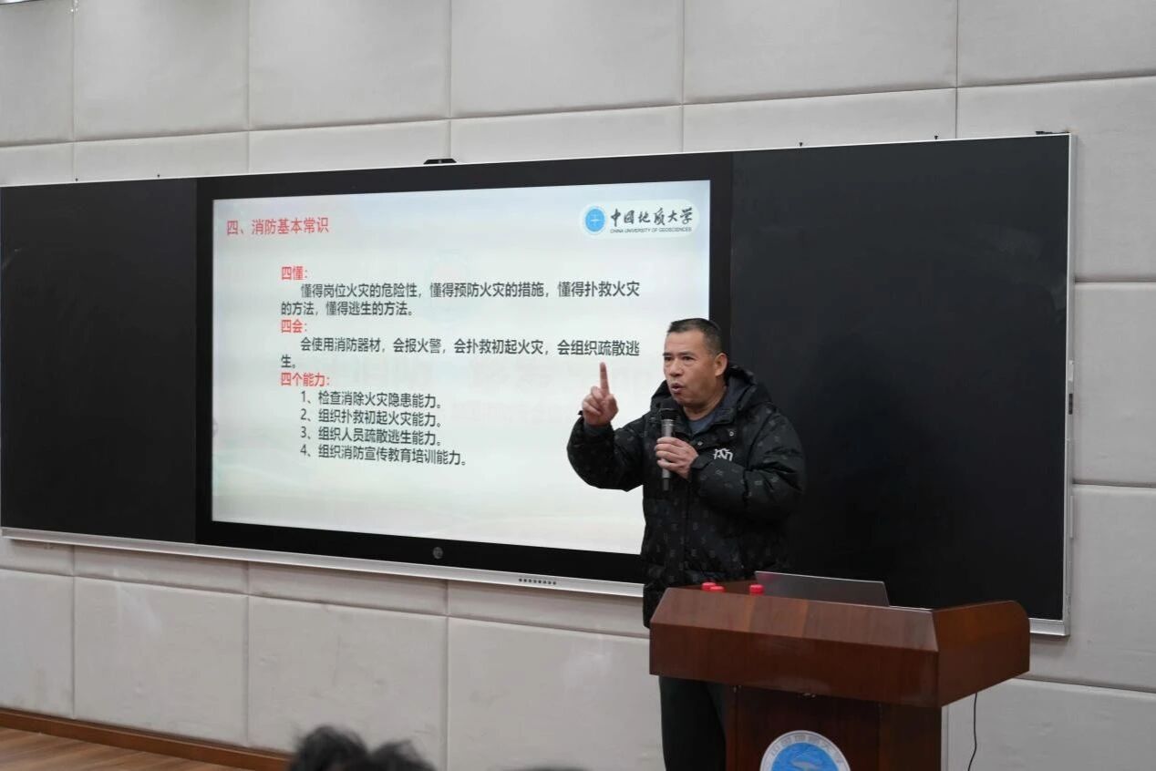 刘老师以真实案例敲响安全警钟,通过复盘本校近年发生的火灾事件,结合典型案例,深刻阐释了消防安全工作的紧迫性与重要性。他特别强调,消防安全必须严格恪守 “谁使用、谁管理、谁负责” 的工作原则,明确每一名师生在校园消防安全中的主体责任。在讲解过程中,他紧扣消防安全 “四懂、四会、四能力” 核心要求,系统传授基础灭火方法,针对学生宿舍、实验室等校园高危区域,重点列举在床上点燃蚊香、随意丢弃未熄灭烟头、使用劣质电器等高频安全隐患事件,着重提醒同学们务必养成 “人走电断” 的良好习惯,做到电器使用完毕后及时拔掉插头,从源头筑牢火灾防控防线。同时,他结合 “四懂” 中 “懂得岗位火灾的危险性、懂得预防火灾的措施、懂得逃生的方法” 的要求,引导同学们认清隐患危害;围绕 “四会” 里 “会使用消防器材、会报火警、会扑救初起火灾、会组织疏散逃生” 的要点,讲解实操技巧;并对照 “四能力” 中 “检查消除火灾隐患能力” 的标准,强调日常自查自纠的重要性,助力同学们将消防安全知识转化为实际行动,切实履行好消防安全的责任与义务。